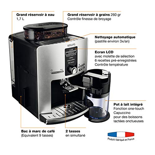 Quattro Force Krups, Aroma-Enthüllungsmaschinen: Genießen Sie einen professionellen, ausgewogenen Espresso mit vollem Aroma. Die Krups-Technologie garantiert eine gleichmäßige und kraftvolle Kaffeemühle dank seines hydraulischen Systems in Kombination mit einer 15 bar Pumpe. Genießen Sie eine optimale Brühung, um einen perfekten Kaffee zu genießen, der Ihren Wünschen entspricht.