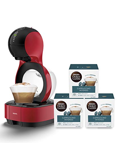 NESCAFÉ Dolce Gusto Krups Lumio KP1305 Kapsel Kaffeemaschine, rot, 1,0 l + Cappuccino Intenso | 48 Kaffeekapseln…