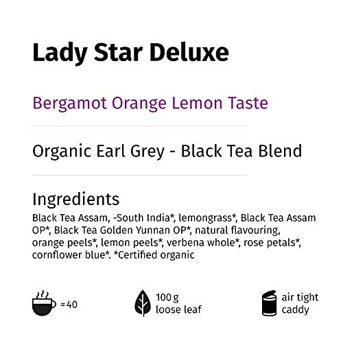 „Lady Star Deluxe“ Earl Grey Tee Lose, Schwarzer Tee in Dose mit Bergamotte Orange Zitronen Geschmack, 100 Gramm Schwarztee Aromatisiert (ca. 40 Tassen) von alveus