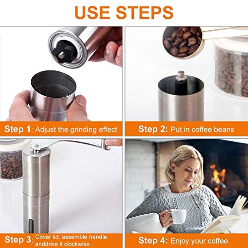 Hochwertige Lebensmittelqualität: Die manuelle Kaffeemühle kann Kaffeebohnen (oder Nüsse, Kräuter und Gewürze usw.) lückenlos zerkleinern.