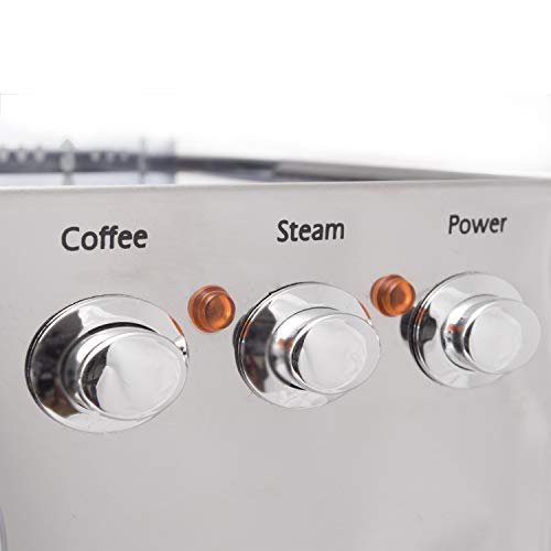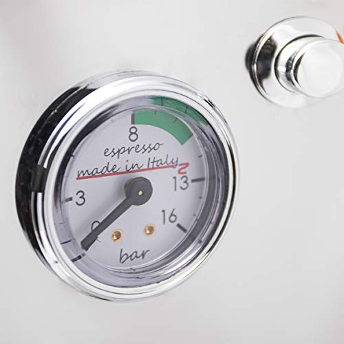 Espresso-Kaffeemaschine mit integrierter Kaffeemühle und Edelstahl-Gehäuse. Die perfekte Abtrennung für diejenigen, die eine kompakte Kabine durchsuchen, ohne auf das Beste aufgebraucht die Gesamtheit Kaffeebohne zu verzichten. Mit der Dampfdüse kann man Cappuccino vorbereiten und Heißwasser für Americano, Tee oder Kräutertee zur Verfügung haben. Ideal für kleine Familien, die den Kaffee mäßig verwenden. Die Kabine funktioniert mit gemahlenem Kaffee (1 oder 2 Tassen) oder mit Kaffee-Pads. Merkmale des Produkts: Kessel aufgebraucht Messing von 250 mlOvalen Chrom-SchalterAbtropfschale-Gitter aufgebraucht EdelstahlSeitliche und frontale Sicht des Wasserniveaus im TankDampfdüseKaffeemühle mit Mahlsteinen von Ø38 mm, mit mikrometrischer Beseitigung des MahlensSiebträger Ø 57 mmDreiwege-Magnetventil zum Frottieren der Kaffee-PastilleManometerEdelstahl-Gehäuse und Tassenwärmer Das Paket enthält: Sieb 1 TasseSieb 2 TassenSieb für PadsPlastik Kaffee Tamper
