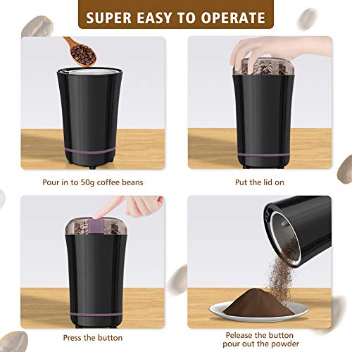 ☕Powerful & Efficient – Hochwertige 304-Doppelklingen aus rostfreiem Stahl und ein leistungsstarker Motor sorgen für schnelles und gleichmäßiges Mahlen und mahlen problemlos jede Art von Kaffee, von grob bis fein, schnell und effizient mit minimalem Mahlgeräusch.