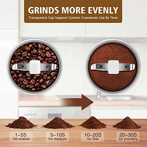LEYONA Elektrische Kaffeemühle – 150-W-Gewürzmühle mit Edelstahlklinge und -Schale, One-Touch-Control-Kaffeebohnenmühle…