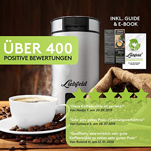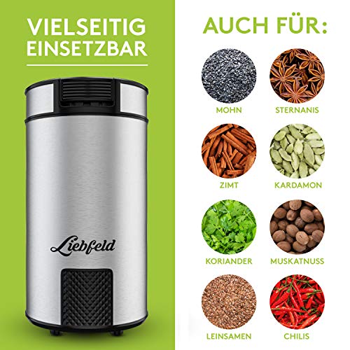 Liebfeld Kaffeemühle Elektrisch aus Edelstahl – Coffee Grinder für Kaffee, Gewürze, Nüsse – Elektrische Kaffeemühle…
