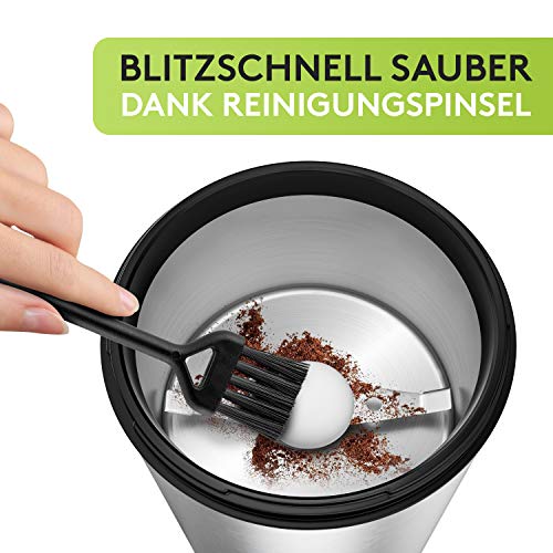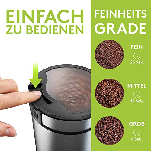 ☕ SICHER IN DER ANWENDUNG – Trotz der hochwertigen, elektrischen Edelstahl Messer geht vom Coffee Grinder kein Risiko ganz: Er ist extrem simpel in der Anwendung und läuft ungeachtet bei verschlossenem Deckel!
