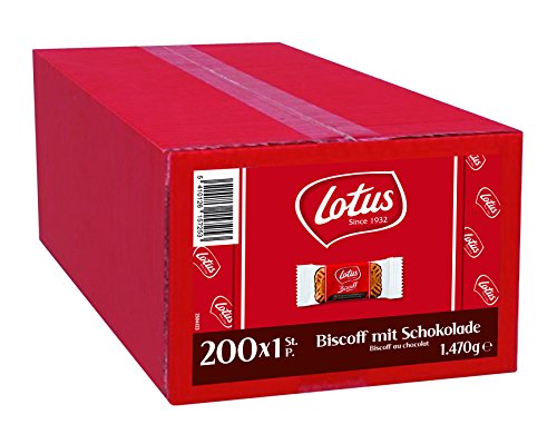 Lotus zum Kaffee – ist ein festes Ritual. Der Name von Lotus Biscoff setzt sich ganz den Begriffen „Biscuit“ und „Coffee“ zusammen. Beim gemeinsamen Verzehr bleiben die individuellen Eigenschaften von Kaffee und Lotus Biscoff abstandslos erlangen. Die typische Karamellnote harmonisiert perfekt mit dem Aroma des Kaffees. Lotus Biscoff mit Schokolade sind auf der unteren Seite in Schokolade getaucht, was den eigenen Geschmack noch zusätzlich unterstreicht. Verwöhnen Sie Ihre Gäste, Kunden, Arbeitnehmer oder einfach sich selbst mit diesen knusprigen Karamellkeksen.