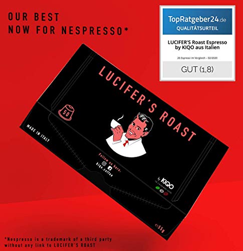 LUCIFERS ROAST 100x Kaffeekapseln f. Nespresso by KIQO aus Italien – sehr starker Espresso – säurearm – für kompatible…