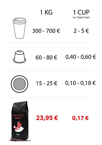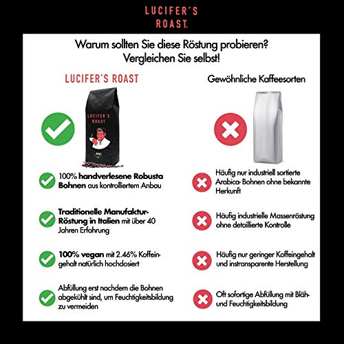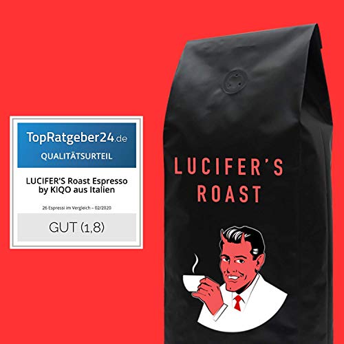 LUCIFERS ROAST Kaffeebohnen by KIQO aus Italien – sehr starker Espresso – säurearm – für Kaffeevollautomaten oder…