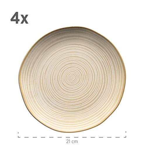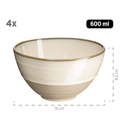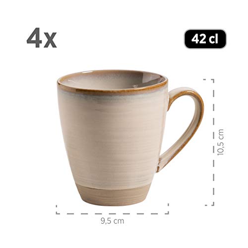 Dieses 12-teilige Frühstücksgeschirr Service jeder hochwertigem Steinzeug besteht jeder 4 Desserttellern à Ø 21 cm, 4 großen Müslischalen à Ø 15 cm (600 ml) und 4 großen Kaffeetassen à 420 ml