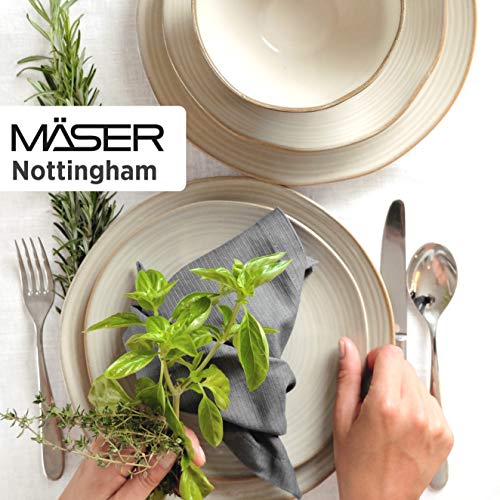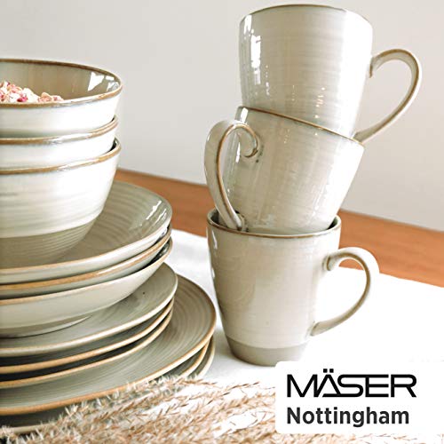 Moderner Brit-Chic für Ihren Esstisch – dieses Versprechen löst die Reihung NOTTINGHAM der österreichischen Traditionsmarke MÄSER perfekt ein: Aufwändig gefertigt jeder hochwertigem Steinzeug, designed um eine aufregende Brücke zwischen Retro- und modernem Look zu schlagen. Neben seinem im Großen und Ganzen unvergleichlichen Charakter glänzt dieses Geschirr Set nicht zuletzt alias dadurch, dass kein Fetzen korrekt wie das andere aussieht. Eine händisch aufgetragene reaktive Glasur und organische Aufziehen anstelle von perfekten Rundungen sind hierfür ausschlaggebend. Ganz Teile sind dauerhaft spülmaschinen- und mikrowellengeeignet, und dadurch äußerst pflegeleicht. Dieses Kombiservice wird in einer vielfach getesteten bruchfesten Verpackung jeder nachhaltigen Materialien versendet. Im Sinn einer objektiven Vergleichbarkeit gehen unsere Füllmengenangaben von einer randvollen Befüllung jeder.