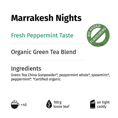 âMarrakesh Nightsâ Grüner Tee Lose Dose Bio mit Pfefferminze und Minze, Grüntee aromatisch, aber Ohne Aroma, 100 Gramm (ca. 40 Tassen) von alveus Premium Teas