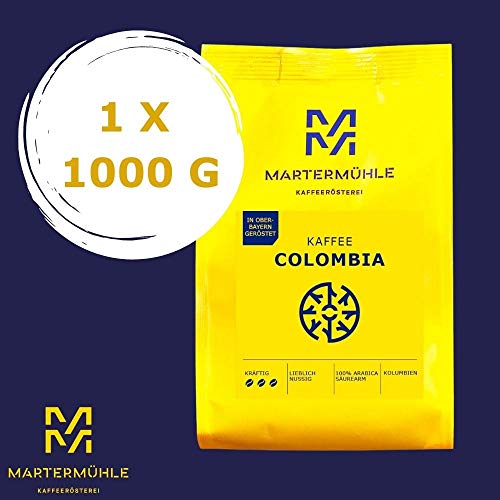 Martermühle Colombia Kaffeebohnen 1kg kräftig, Arabica – fruchtig nussiges Aroma, ganze Kaffee-Bohnen schonend geröstet…