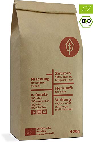 INHALT: 400g frischer Bio Mate Tee (Mateblätter, ohne Aste und Pulver) luftgetrocknet, frei von Pestiziden und o. k. gehandelt. Kontrolliert und eingepackt in Leipzig.