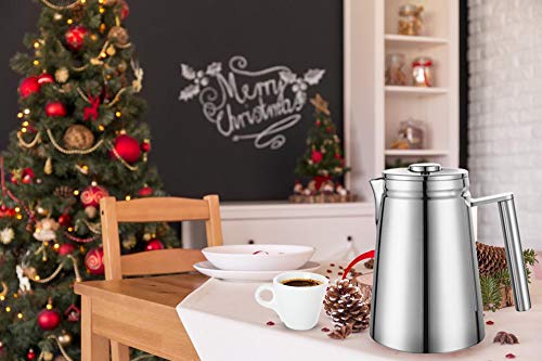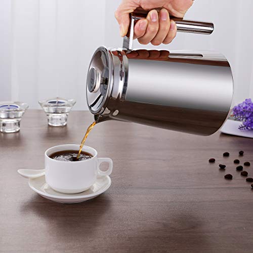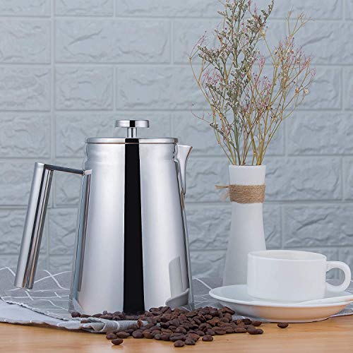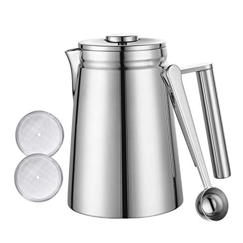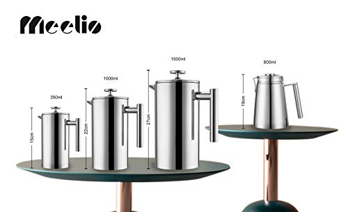 MeelioCafe Kaffeepresse,French Press 800ML(5 Tassen), aus hochwertigem Edelstahl, mit Zwei zusätzlichen Filtersieben und…