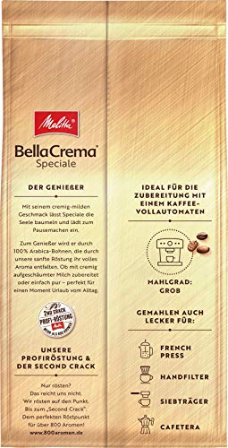 Lieferumfang: 1000 g Melitta BellaCrema Speciale, Ganze Bohnen, Stärke 2, 100 % Arabica-Bohnen