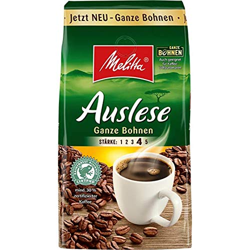 12 x 500 gramm ,Melitta Auslese Ganze Bohnen Kaffeebohnen haben einen kräftigen Geschmack und ein rundes Aroma. Für jeglicher, die unsere Melitta Auslese gewöhnlich lieben, ihre Bohnen dagegen lieber im Alleingang frisch mahlen. Alias jeglicher Kaffeevollautomaten-Verwender können so in den Genuss unserer Auslese kommen. Dafür votieren wir geschmacksintensive Kaffeebohnen kritisch sämtliche und rösten sie etwas dunkler, sodass sie ihren kräftigen Geschmack und das runde Aroma entfalten. Das ist das Geheimnis von Auslese. Melitta Auslese Ganze Bohnen ist brauchbar für die Zubereitung mit dem Kaffeevollautomaten oder nach dem Mahlen in der Kaffeemühle für Hanfiltration, Siebträger oder French Press.