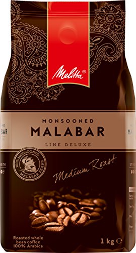 Lieferumfang: 1kg Melitta Line Deluxe Monsooned Malabar, Ganze Bohnen, Stärke 4, 100% Arabica-Bohnen