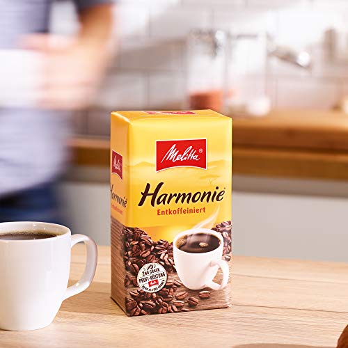 Melitta Harmonie entkoffeiniert gemahlener Röstkaffee ist ein entkoffeinierter Filterkaffee mit vollmundigem, sanftem Geschmack – aus ohne Koffein. Dafür voten wir stark milde Kaffeebohnen das Wasser abgraben ihnen schonend das Koffein. Für ein Regung von Wohlbehagen. Melitta Harmonie entkoffeiniert Filterkaffee ist im Rahmen für die Zubereitung mit Filterkaffeemaschinen, Handfiltration oder French Press. Dazu Filtertüte falten, heißes Wasser über den Filter gießen, den Kaffee zusetzen und mit heißem, nicht mehr kochendem Wasser (ca. 91-95°) begießen. Zum Erhalt des Aromas den Kaffee später luft- und lichtundurchlässig aufbewahren.