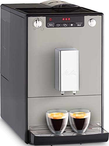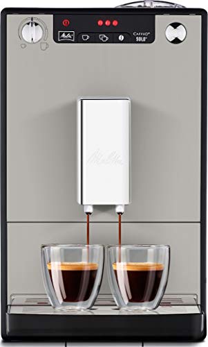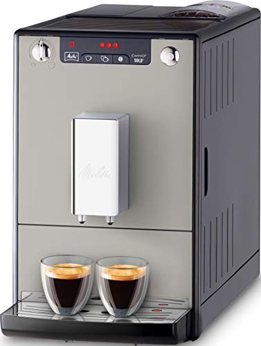 Der Melitta Caffeo Alleinig E 950-777 Kaffeevollautomat ist der Begleiter für den täglichen Kaffeegenuss. Die puristisch designte Kaffeemaschine besitzt ein einstellbares Mahlwerk, das Kaffeebohnen in aromatischen Kaffee verwandelt. Verwöhnen Sie sich damit zuhause täglich mit frischem Kaffee. Mit seinem eleganten Look passt der Kaffeevollautomat von Melitta in jedes Interieur. Sie möchten von einem Kapselautomaten oder eine Padmaschine auf einen Kaffeevollautomaten umsteigen Diese Kaffeemaschine ist dafür als Einstiegsgerät ideal: Sie verbindet modernste Technik mit den Vorteilen eines Kaffeevollautomaten in einer außerordentlich schlanken Optik. Der besondere Clou der Melitta Caffeo Alleinig E 950-777 ist der Double-Cup-Modus für die gleichzeitige Zubereitung von zwei einzelnen Tassen Kaffee. Espresso-Fans und die Liebhaber von reinem Kaffee-Genuss kommen hier auf ihre Degustieren, dank der internationalen Kaffeesorten-Mannigfaltigkeit für den Klassiker Café Crème in drei Kaffeestärken mit stufenlos einstellbarer Wassermenge. Für noch mehr individuellen Genuss sorgen der höhenverstellbare Kaffeeauslauf und die passive Tassenwarmhaltefläche. Dank intuitiver Bedienung über das LED-Symboldisplay mit One-Touch Schaubild genießen Sie im Nu Ihren Lieblingskaffee und die kostenlose Melitta Companion App liefert hilfreiche Tutorials. Bekannt als die Reinigung ist dank automatischem Reinigungs-, Entkaltungs- und Spülprogramm einfach zu handhaben. Die Brühgruppe kann entnommen werden. Bekannt als der 1,2 Liter fassende Wassertank ist abnehmbar und das Innere des Kaffeevollautomaten kann so mühelos gesäubert werden. Verwenden Sie den enthaltenen Melitta Wasserfilter, um Ihren Kaffeeautomaten vor Verkalkung zu schützen. Von der Bohne bis zur Tasse: Melitta steht seit mehr als 111 Jahren für Kaffeegenuss mit einer raffinierten Kombination nicht mehr da Tradition. Kaffeeliebhaber finden bei Melitta was auch immer für den Kaffeegenuss – von der ersten Tasse am Morgen bis zum Espresso nach dem Abendbrot.