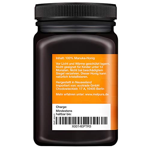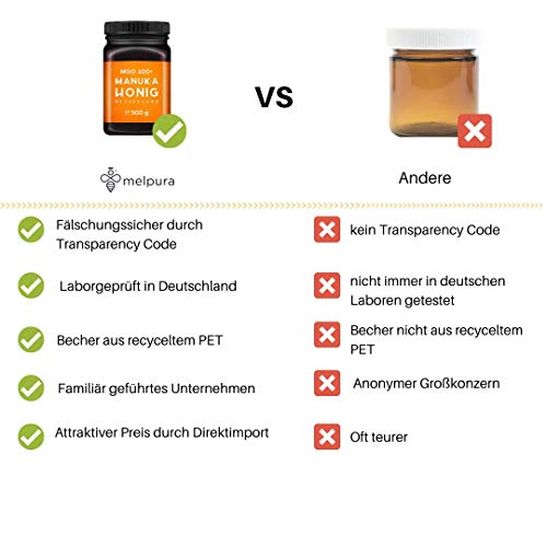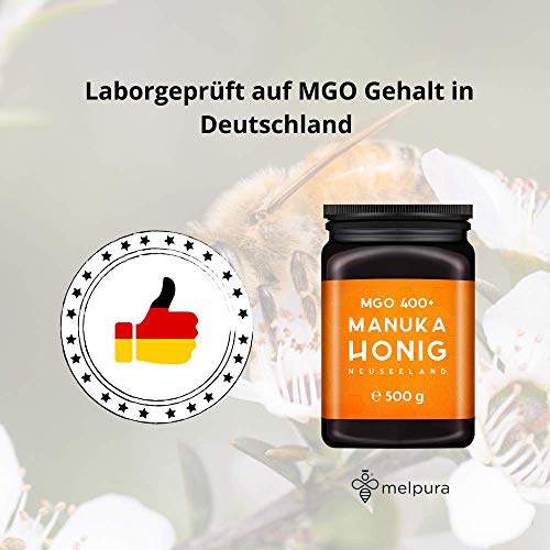 MELPURA Manuka Honig MGO 400+ 500g aus Neuseeland mit zertifiziertem, natürlichem Methylglyoxal-Gehalt â Laborgeprüft, verifizierte Herkunft, fairer Handel direkt vom Erzeuger