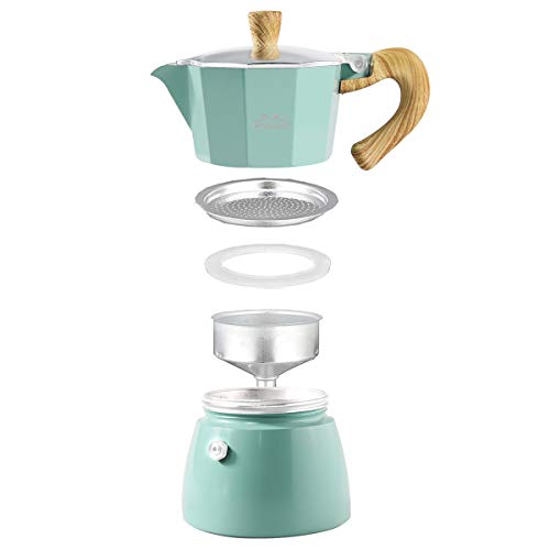 【Einfach zu bedienen】 Kann auf Gas- oder Keramikherden verwendet werden, ermöglicht es Ihnen, den besten Kaffee mit größter Leichtigkeit zu kreieren und zu genießen.