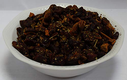 Cranberrystücke (Cranberrys, Zucker, Sonnenblumenöl), Apfelwürfel, Mistelkraut, Sternanis, Zimtstangen, Aroma, Brombeerblätter, gefr.-getr. Cranberryscheiben, Färberdisteln.