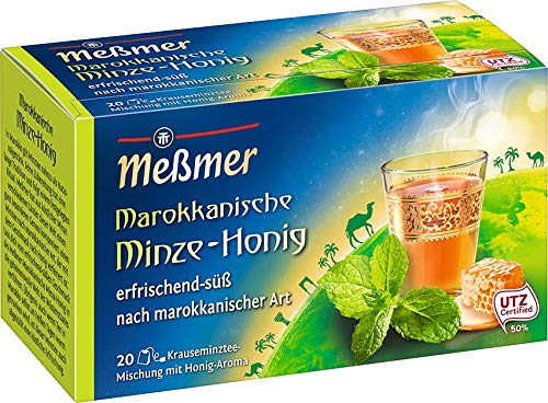 In Marokko gilt Minztee nahezu als Nationalgetränk. Seine Zubereitung hat eine lange Tradition und folgt einem festgelegten Ritual. Meßmer hat aus köstlicher Minze verschiedener Länder dieser Welt einen ganz besonderen Genuss komponiert: einen Minztee nach marokkanischer Art, der mit dem Geschmack nach Honig verfeinert ist. Lass dich vom minzig-süßen Geschmack des Meßmer Marokkanische Minze-Honig Tees in die geheimnisvolle Welt des Wüstenstaates verführen. Übrigens: alias wenn Tee in Marokko selbst an heißen Tagen warm getrunken, ist dieser Minztee alias abgekühlt eine köstliche Erfrischung. Eine besondere Teesorte im praktischen Teebeutel.
