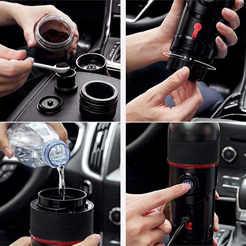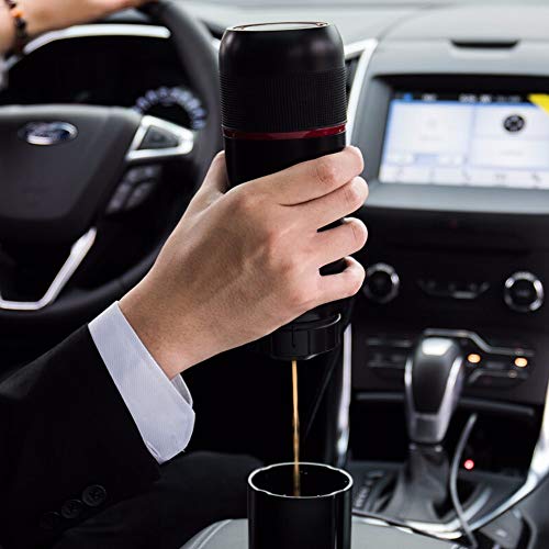 Jacke wie Hose wo Sie sind, tragbare Handpresse Kaffeemaschine verwenden, genießen leckeren Kaffee.
