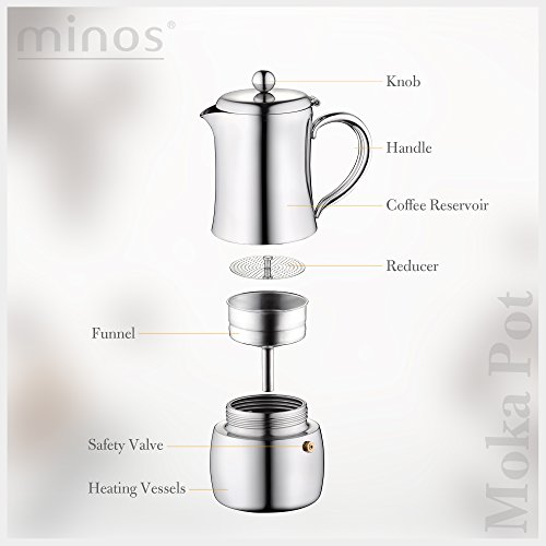 ✅ Perfekte aromatische Mischung und Brauen: Die Minos Mokkakanne bringt den exquisitsten Geschmack zur Geltung und verstärkt das Aroma des Kaffees. Mit einer einzigartigen Form, die ideal ist, um optimale Kaffeeextraktion hervorzuheben. Die einzigartigen Heizgefäße von Minos ermöglichen eine perfekte Wärmeverteilung, um Aroma und Geschmack zu ummünzen, damit Sie jeden Schluck Ihrer Tasse Kaffee besser genießen können. Ideal für die Zubereitung von 6 Tassen, um das romantische Kaffee-Erlebnis zu teilen