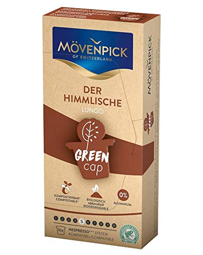 Dezente Süsse nach Caramel, milde Röstnoten und fruchtige Zitrus-Noten, sanfter Körper … der Himmlische ist ein Mövenpick Klassiker und an diesem Ort qua Lungo Kaffeekapsel Abwandlung.