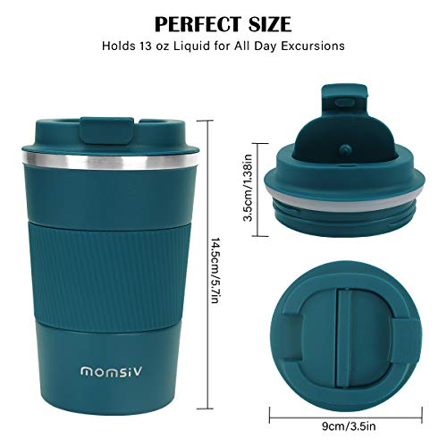 【Auslaufsichere Kaffeetasse】- MOMSIV Kaffeetasse Der BPA-freie Schraubdeckel verhindert zusammen mit dem Silikondichtring das Austreten von Wasser. Es kann Ihre Getränke leistungsfähig halten und hat einen spritzwassergeschützten Klappdeckel für bequemes Trinken. Öffnen Sie einfach das Schluckloch. Das innere Quadrat und das äußere Kreisdesign für die Außenseite des Deckels lindern das Öffnen. Zum Öffnen schnell drehen und leicht reinigen