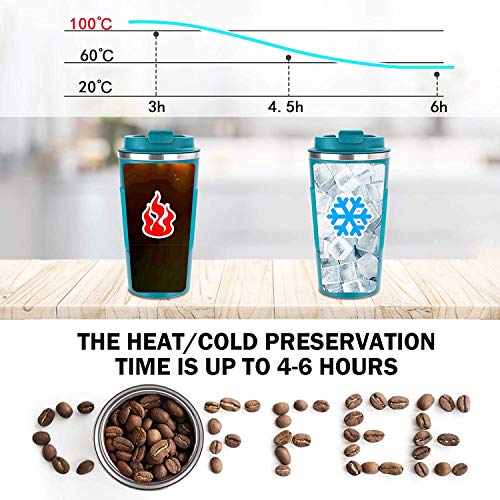 【Bequemes Befüllen und Trinken】 Die thermobecher hat eine große Öffnung, die sich zum Hinzufügen von Wasser und Reinigen eignet. Eine kleine Öffnung am oberen Rand des Deckels, die sich um 180 ° öffnet. Sie ist nicht hingegen bequem zu trinken, sondern verhindert auch, dass die thermobecher zu bombastisch kippt und dann zu bombastisch überläuft.