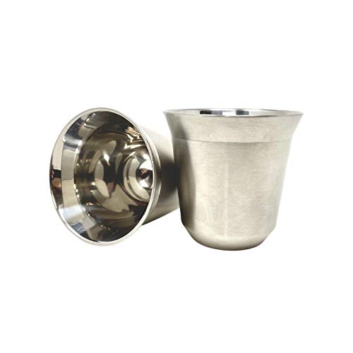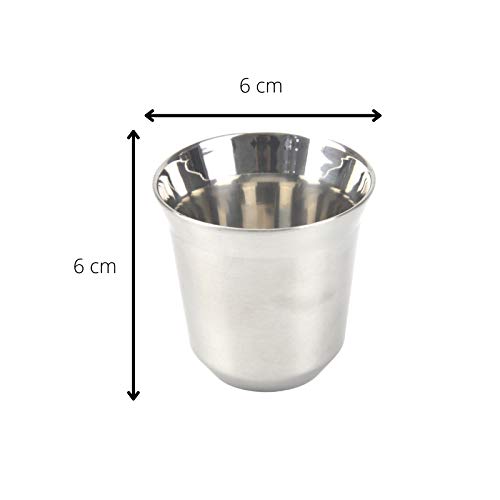 Doppelwandige Tassen: Die doppelwandige Tasse verlangsamt die Wärmeleitung und hält den Kaffee länger warm und verhindert ein Abbrennen der Hände. Die Tassen sind aus Edelstahl für optimale Stärke und ein klares Design. Die Tassen haben 80 ml.