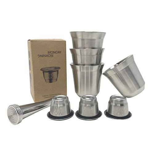 Monday Morning Wiederverwendbare Edelstahl-Kapsel kompatibel mit Nespresso-Maschinen. Das spart Geld und vermeidet unnötiges Verzehr von Einwegkapseln.