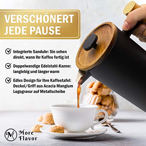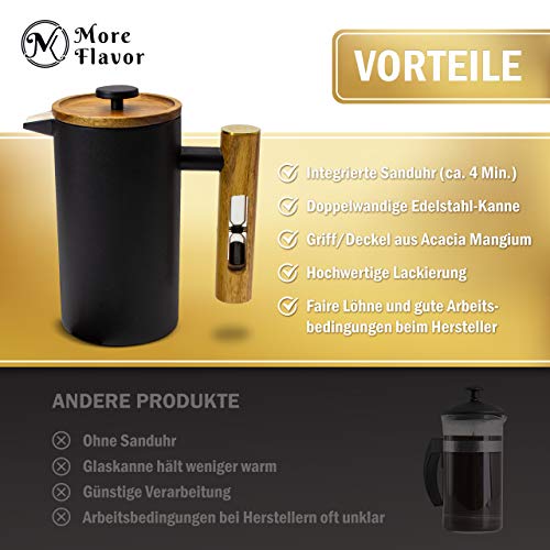 MoreFlavor French Press aus Edelstahl und Acacia Mangium Holz – der perfekte Kaffeebereiter für Ihr Zuhause – lecker…