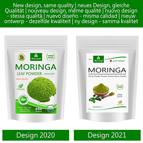 Moringa Pulver 250g – Vegan und glutenfrei – Mikrofeines Oleifera Blattpulver enthält Vitamine, Proteine, Aminosäuren, Mikronährstoffe mit höchster Bioverfügbarkeit – von MoriVeda – 1 x 250g
