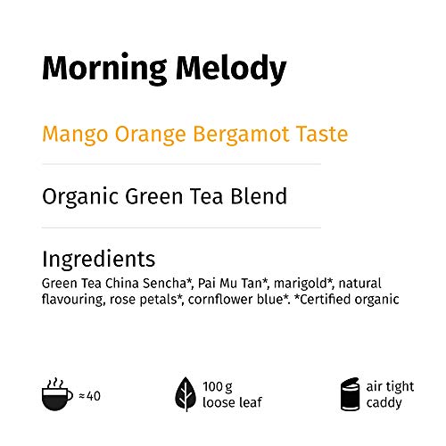 „Morning Melody“ Mango Orange Bergamotte Grüner Tee Lose, Aromatisierter Grüntee Dose 100 Gramm von alveus Premium Teas
