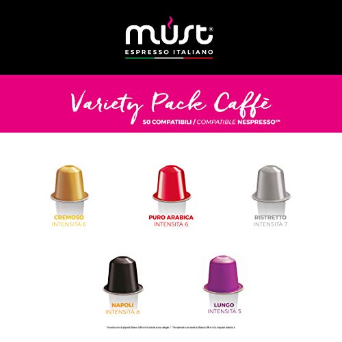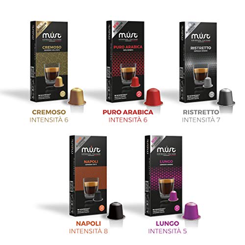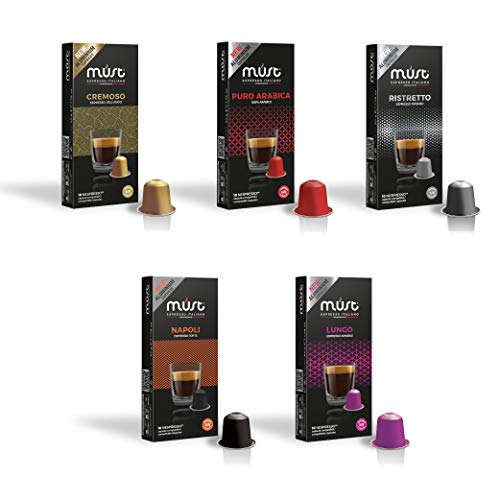 MUST 50 Kaffeekapseln aus 100% Aluminium Recycelbar Variety Pack Gemischt, 5 Packungen mit 10 Kapseln, Kompatibel mit…