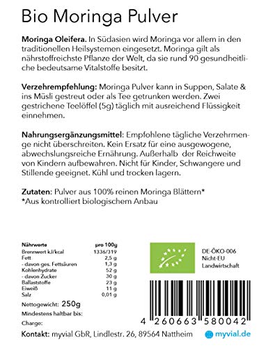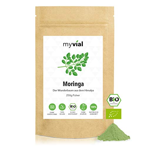 Bio Moringa Pulver 250g â Premium Qualität aus Blättern â Moringa Oleifera roh verarbeitet â Vegan ohne Zusatzstoffe plastikfrei laborgeprüft â Ideal für Smoothies und Tee