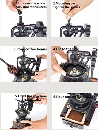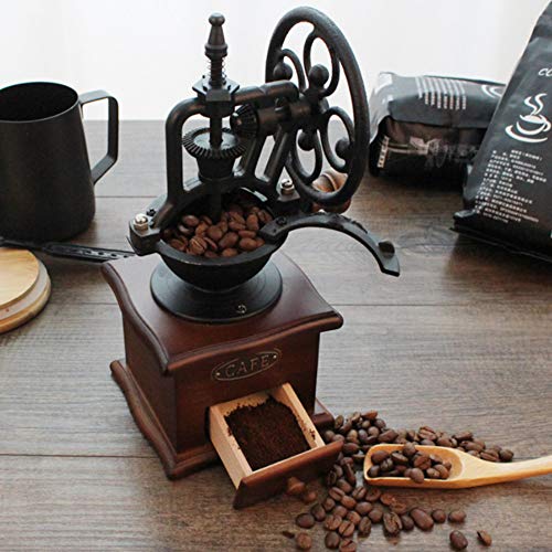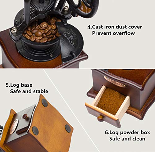 NAVND klassische Retro-Kaffeemaschine mit Gusseisen-Technologie, phänomenal und langlebig; reine Holzkonstruktion, erschütterungsfest und erschütterungsfest; Keramik-Mahlkern, außerordentlich und nicht heiß. Es ist einfach zu bedienen und kann in wenigen Minuten massenhaft Kaffeepulver bekommen. Wir empfehlen die Reinigung der Kaffeemaschine statt ca. 1 Woche, um sicherere und gesündere zu gewährleisten!