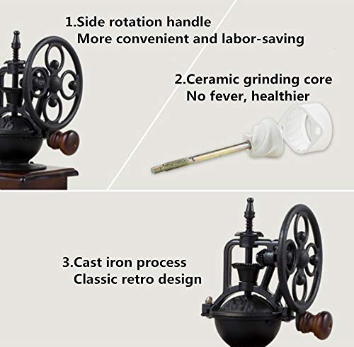 ✿ Design: Klassisches Retro-Design, mit Gusseisen-Technologie, Keramik-Mahlkern, exquisites reines Holz, allerbest entsprechend statt Dekoration, entsprechend statt Espresso, Gewürze, Kräuter, Nüsse und weitere Körner.