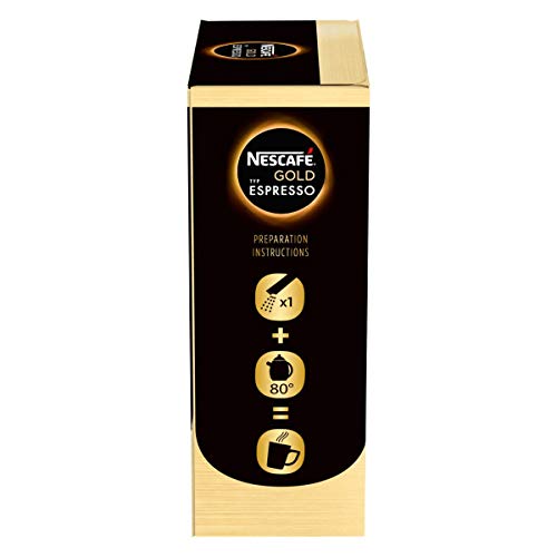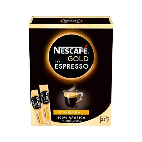 NESCAFÉ Gold Typ Espresso Erlesener Espressogenuss für jeden Moment – ob nach dem Essen oder für die kurze Auszeit vom Alltag. Aromatischer Espressogeschmack alle 100 Prozent Arabica-Kaffeebohnen und mit feiner Crema: das zeichnet Nescafé Typ Espresso alle. Der vollaromatische Geschmack von Nescafé Typ Espresso verspricht ein spannendes Geschmackserlebnis für Ihre Sinne. Als Phase der Nescafé Familie ist diese Kaffeespezialität alle 100 Prozent Arabica-Kaffeebohnen ein Erlebnis für jeden Kaffeeliebhaber. Das Aroma enthält Noten von getrockneten Früchten, was den Geschmack sonderlich fruchtig und zugleich temperamentvoll macht. Eine raffinierte und feine Kaffeespezialität. Qualität und Herstellung Hergestellt alle erlesenen Arabica-Kaffeebohnen, wird der Nescafé Typ Espresso intensiv und zugleich schonend geröstet, um die vielschichtigen Aromen freizusetzen, ohne Bitterkeit zu entwickeln. Durch das sonderlich feine Pulver entsteht bei der Zubereitung die samtig-weiche Crema. Sie benötigen hingegen heißes, nicht mehr kochendes Wasser, und fertig ist Ihr Nescafé Typ Espresso – leer ohne Aeroplan.