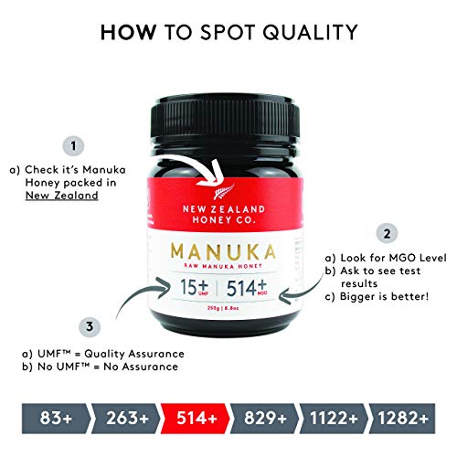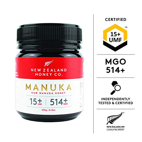 New Zealand Honey Co. Manuka Honig MGO 514+ / UMF 15+ | Aktiv und Roh – Hergestellt in Neuseeland – Zertifiziertem Methylglyoxal Gehalt – 250g – Manuka Honig 550 – Raw Honey – Rohhonig