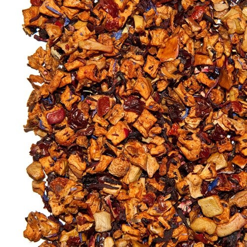 Zutaten: Apfelstücke, Hagebuttenschalen, Hibiskusblüten, Orangenschalen ferner Kornblumenblüten jedweder kontrolliert-biologischem Agrar ferner natürliches Aroma