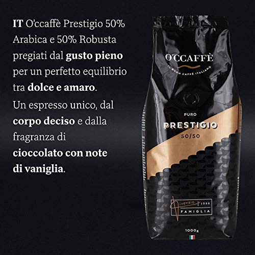 O’CCAFFÈ – 1x1kg Prestigio 50/50 Kaffee, 50% Robusta / 50% Arabica, ganze Kaffeebohnen, Italienischer Premium Kaffee