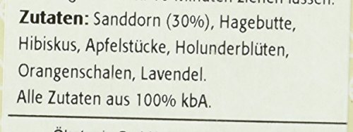 Sanddorn (30%), Hagebutte, Hibiskus, Apfelstücke, Holunderblüten, Lavendel, Orangenstücke