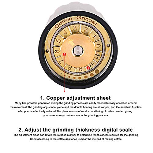 Kapazität: 25–28 g Stahlkern, schnelle Mahlgeschwindigkeit, wohl 23 Sekunden, die Kernfunktion unserer Kaffeemühle, hängt von ihrem doppelten Lager-Design ab, kann leicht und reibungslos mittelgroßen Kaffeesatz in 23 Sekunden mahlen, „Feinschliff“ ist sehr schnell, dagegen der gesamte Mahlprozess ist angenehm und arbeitssparend, was unser Preisvorteil gegenüber dem Marktgebiet kostengünstige Bohnenmühle ist.