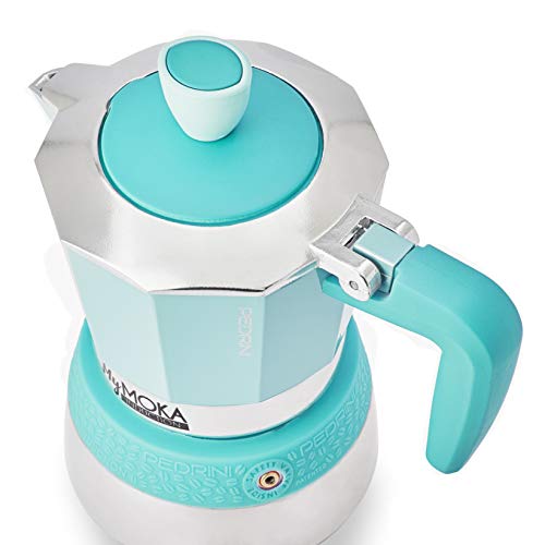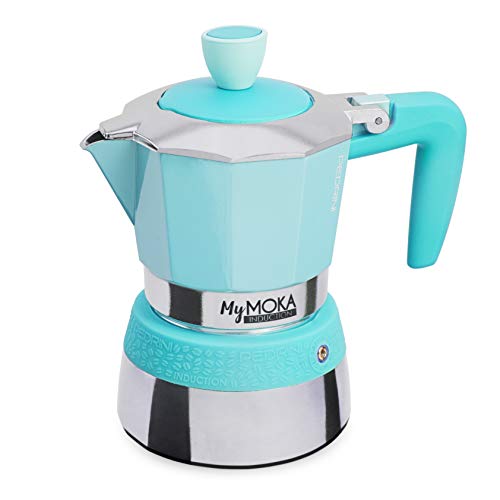 Mymoka Pedrini ist die erste Kaffeekanne zugunsten die Gesamtheit Induktionskochfelder, außen die Gesamtheit Stahl und innen die Gesamtheit Alu ermöglicht die Zubereitung eines Gutscheins als bei herkömmlichen Mokka.