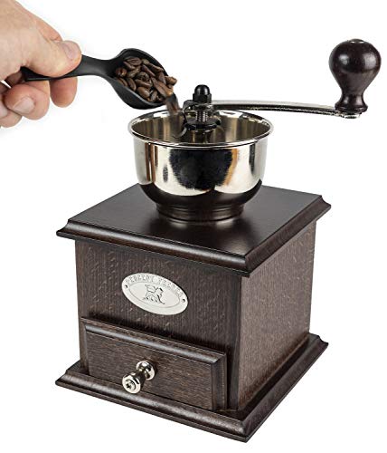 Speziell für Kaffee: Edelstahl-Mahlwerk für leistungsstarke Mahlung, Einfaches Befüllen mit gerösteten Kaffeebohnen und sofortiger Mahlbeginn per Hand möglich