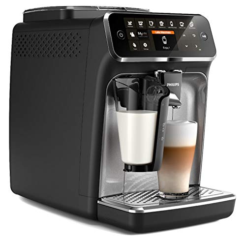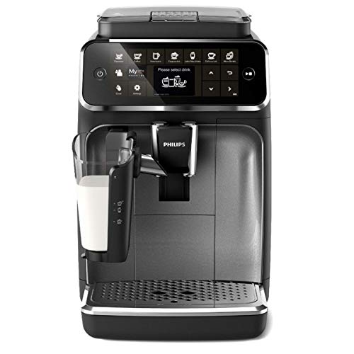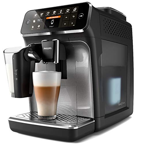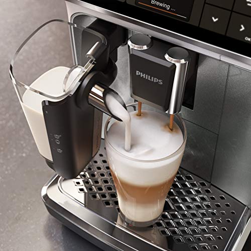 Bereiten Sie per dem Kaffeevollautomaten EP4346 von Philips 8 verschiedene aromatische Kaffeespezialitäten qua Kaffee, Espresso, Cappuccino und Latte Macchiato auf Tastendruck zu. Das LatteGo Milchsystem verfeinert Ihren Kaffee per samtig-cremigem Milchschaum, ist einfach einzurichten und ist in Sekundenschnelle hygienisch rein.
